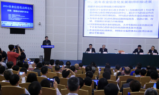 本網(wǎng)訊:10月25日,2014農(nóng)業(yè)信息化高峰論壇在山東青島舉辦。農(nóng)業(yè)部副部長陳曉華在講話時指出,信息化對于加快轉(zhuǎn)變農(nóng)業(yè)發(fā)展方式、建設(shè)現(xiàn)代農(nóng)業(yè)具有重要的牽引和驅(qū)動作用,是現(xiàn)代農(nóng)業(yè)的制高點。陳曉華認為,近些年來農(nóng)業(yè)信息化發(fā)展取得了積極進展。農(nóng)業(yè)信息服務(wù)體系建設(shè)得到加強,涉農(nóng)網(wǎng)站已達4萬多家,12316服務(wù)熱線已覆蓋全國1/3以上的農(nóng)戶,信息進村入戶試點工作正在10個。ㄊ校22個縣有力推進,F(xiàn)代信息技術(shù)在農(nóng)業(yè)領(lǐng)域應(yīng)用取得突破,農(nóng)業(yè)物聯(lián)網(wǎng)應(yīng)用示范和區(qū)域試驗工程在北京等8。▍^(qū)、市)取得重要階段性成果,農(nóng)產(chǎn)品電子商務(wù)年交易額已超過500億元。同時,農(nóng)業(yè)信息資源開發(fā)利用水平和農(nóng)業(yè)信息基礎(chǔ)能力明顯提升。陳曉華指出,當前農(nóng)業(yè)信息化發(fā)展正面臨難得的機遇和諸多的挑戰(zhàn)。從機遇看,首先中央有明確要求。黨的十八大作出了“四化同步”發(fā)展的戰(zhàn)略部署,習近平總書記強調(diào)“沒有信息化,就沒有現(xiàn)代化”,黨的十八屆三中全會作出了全面深化改革的決定,強調(diào)要使市場在資源配置中起決定性作用和更好發(fā)揮政府作用,推動了市場主體的廣泛參與和先進要素向農(nóng)業(yè)聚積,為農(nóng)業(yè)信息化打開了新的空間,增添新的活力。其次農(nóng)民有強烈需求。農(nóng)業(yè)現(xiàn)代化的推進越來越依賴信息化的發(fā)展,迫切需要加快發(fā)展農(nóng)業(yè)信息化,推動農(nóng)業(yè)發(fā)展方式實現(xiàn)根本性轉(zhuǎn)變,突破資源、環(huán)境約束,確保國家糧食安全和主要農(nóng)產(chǎn)品有效供給,促進新型經(jīng)營主體應(yīng)用新品種、新技術(shù),強化農(nóng)產(chǎn)品質(zhì)量安全監(jiān)管和質(zhì)量追溯體系建設(shè),發(fā)展壯大生產(chǎn)性和生活性服務(wù)業(yè),有效滿足農(nóng)民的信息需求。從挑戰(zhàn)看,我國農(nóng)業(yè)信息化與先進發(fā)達國家和其他行業(yè)相比,還存在基礎(chǔ)比較薄弱、創(chuàng)新能力不足、統(tǒng)籌力度不夠等現(xiàn)實問題,需要下決心盡快解決! £悤匀A提出,到2020年,農(nóng)業(yè)信息化工作要努力實現(xiàn)信息化基礎(chǔ)設(shè)施基本完備,信息資源開放共享取得突破,信息技術(shù)廣泛應(yīng)用,信息公共服務(wù)惠及農(nóng)村農(nóng)民,農(nóng)業(yè)信息人才隊伍建設(shè)得到明顯加強,農(nóng)業(yè)管理信息化水平和網(wǎng)絡(luò)安全保障能力大幅提升,更好地滿足現(xiàn)代農(nóng)業(yè)發(fā)展需要! £悤匀A強調(diào),當前和今后一個時期,農(nóng)業(yè)信息化重點要做好五項工作:一是加快推進信息進村入戶,并逐步覆蓋到全國更多的村;二是繼續(xù)抓好農(nóng)業(yè)物聯(lián)網(wǎng)試驗示范工程,力求在研發(fā)和應(yīng)用方面取得突破;三是推動信息資源開放共享,促進農(nóng)業(yè)信息資源創(chuàng)新應(yīng)用,充分挖掘數(shù)據(jù)價值;四是大力發(fā)展農(nóng)業(yè)電子商務(wù),形成線上與線下相結(jié)合、農(nóng)產(chǎn)品進城與農(nóng)業(yè)生產(chǎn)資料和農(nóng)村消費品下鄉(xiāng)雙向流動的模式;五是加強基礎(chǔ)設(shè)施和條件建設(shè),讓農(nóng)民公平享受信息化發(fā)展成果。